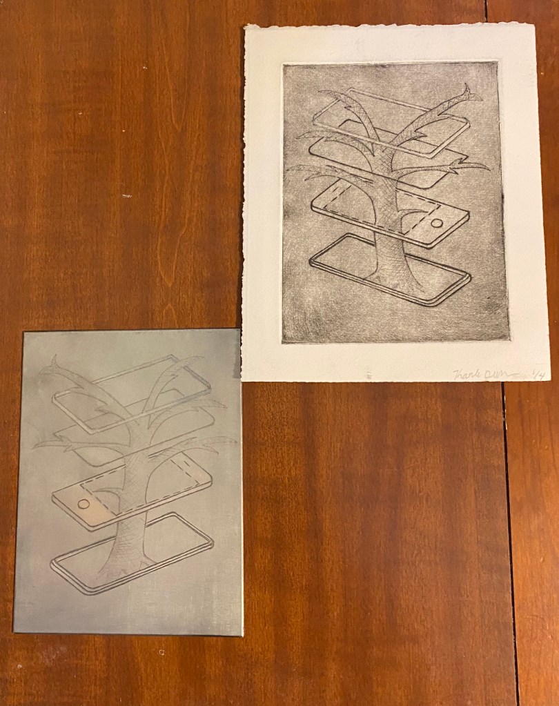 This is my etching project. I had never etched before, and I didn’t even know how. It was a fun process, but it took a long time!
