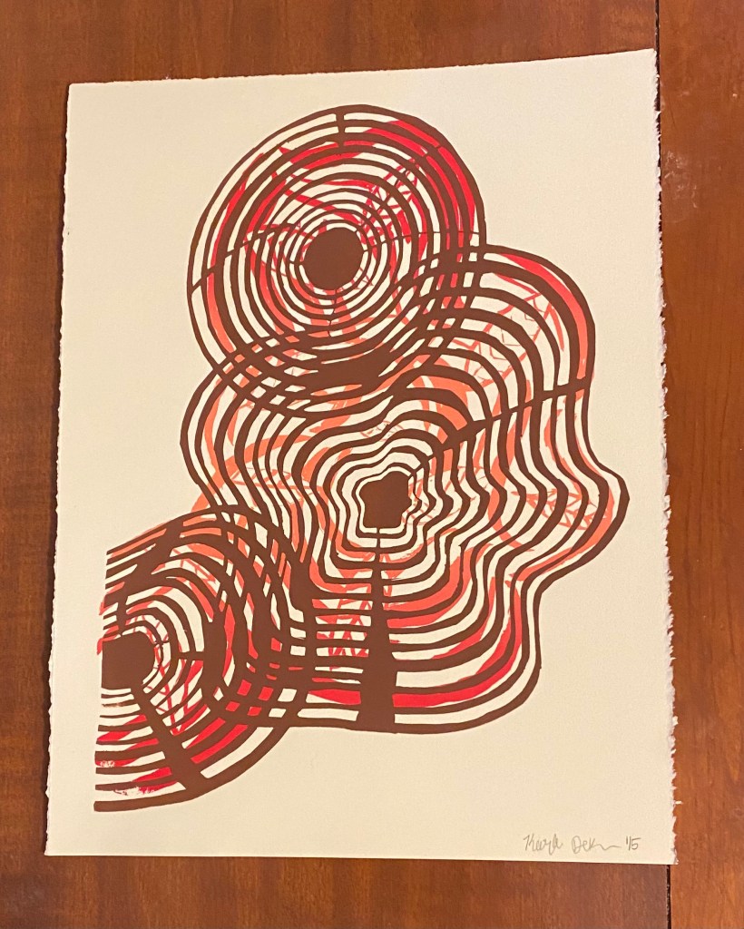 I had 5 screens for this project. I decided to use 22 x 30 inch paper and the screens are smaller than that. So it was a bit of a challenge because I had to wait for my papers to dry or I had to wait to clean a screen.