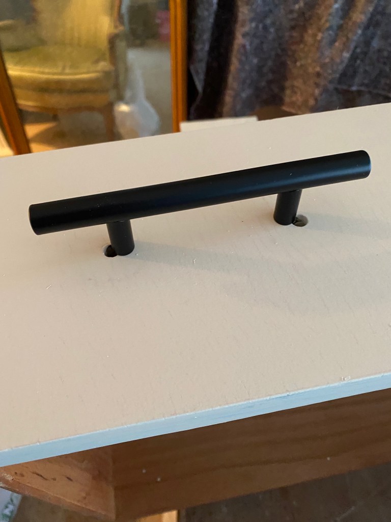 Another problem I ran into were the pulls I bought for the hutch. I bought 12 pulls for the drawers and doors. But my bigger drawers measured a little bigger than the others. I didn’t want to go buy more pulls so I decided to change the location of them. There were 2 pulls on each drawer, so I filled in the old holes and put 1 pull on each drawer in the middle.