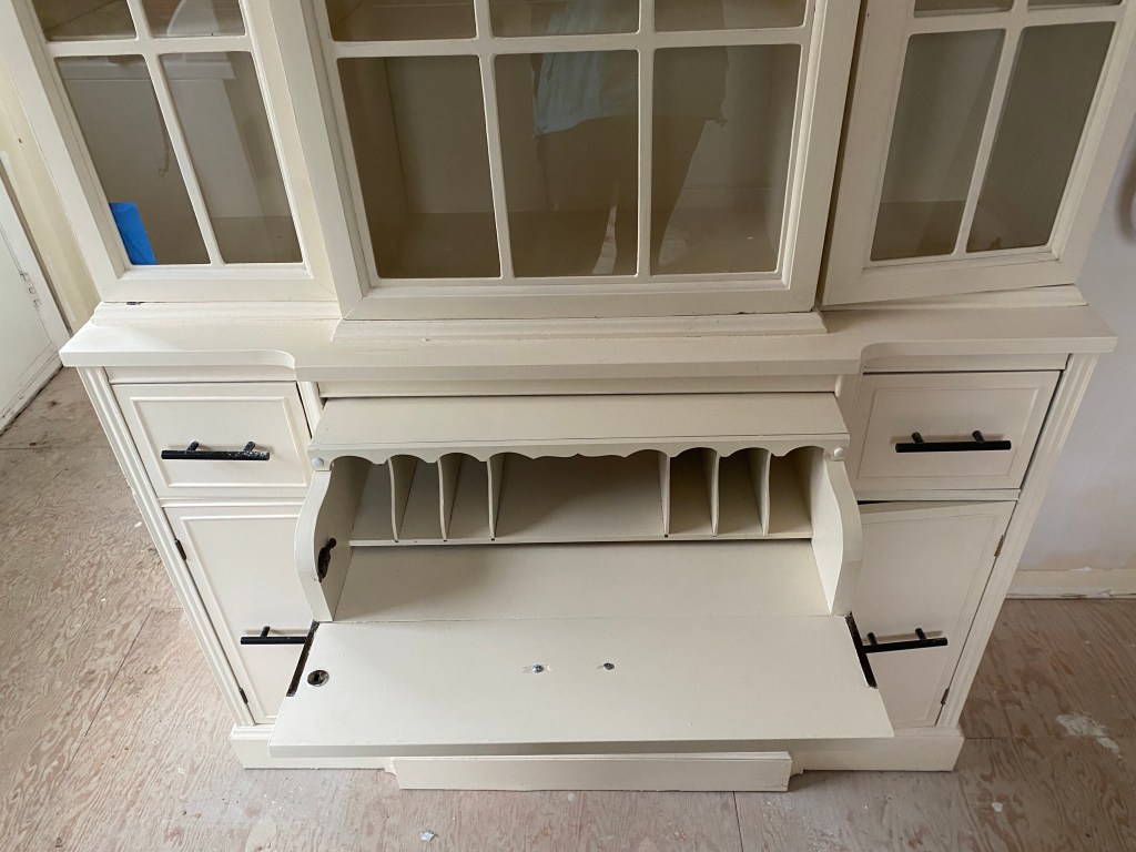 Originally the hutch was … a lot, but I could see the potential. I wanted to paint a nice neutral color, so I went with Sugar Beige from Dutch Boy.